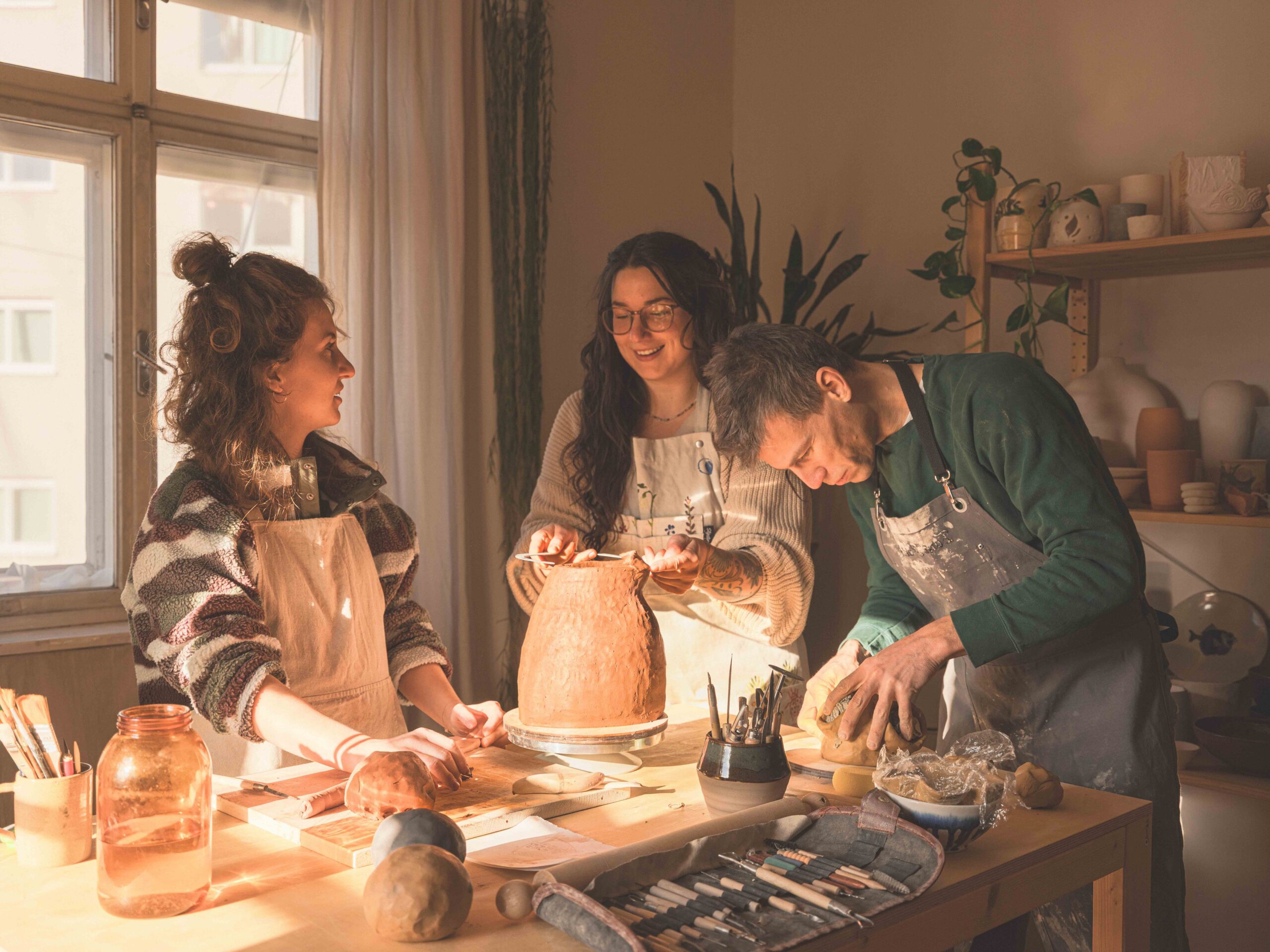 Wir wollen das erste Töpferstudio in Graz eröffnen, an dem Keramikenthusiast:innen – und die, die es noch werden wollen – an einem Ort alles vorfinden, was man für das Arbeiten mit Ton braucht und ihrer Kreativität ungehindert freien Lauf lassen können.